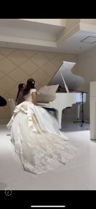 結婚式にウェディング姿の自分の生徒さんが演奏をする