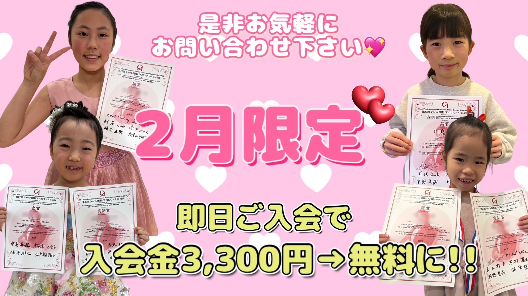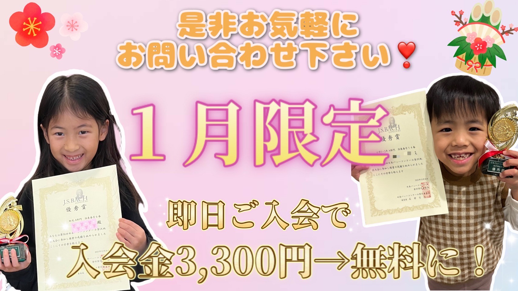 今入会して頂くと、なんと1カ月分のお月謝を半額とさせて頂きます![]()