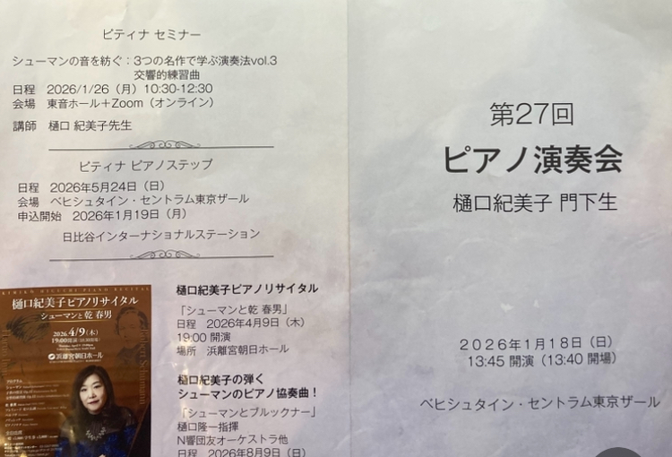 日曜日にピティナ指導者向けのレッスン見学という公開レッスンイベントに参加しました。私の師事している先生の開催イベントでした。朝10時〜12時30分までびっしり(今回は子供レッスンでしたが、数年前に私も弾いたことがありました あの時はがんばったなあと。。^^)