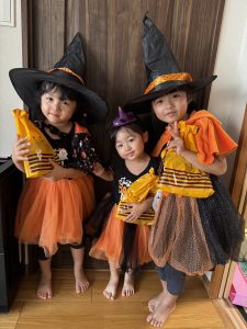小さな生徒さん達に、ハロウィンのコスプレをしてレッスンに来くれたら、お菓子をプレゼントするよ!と伝えてありました