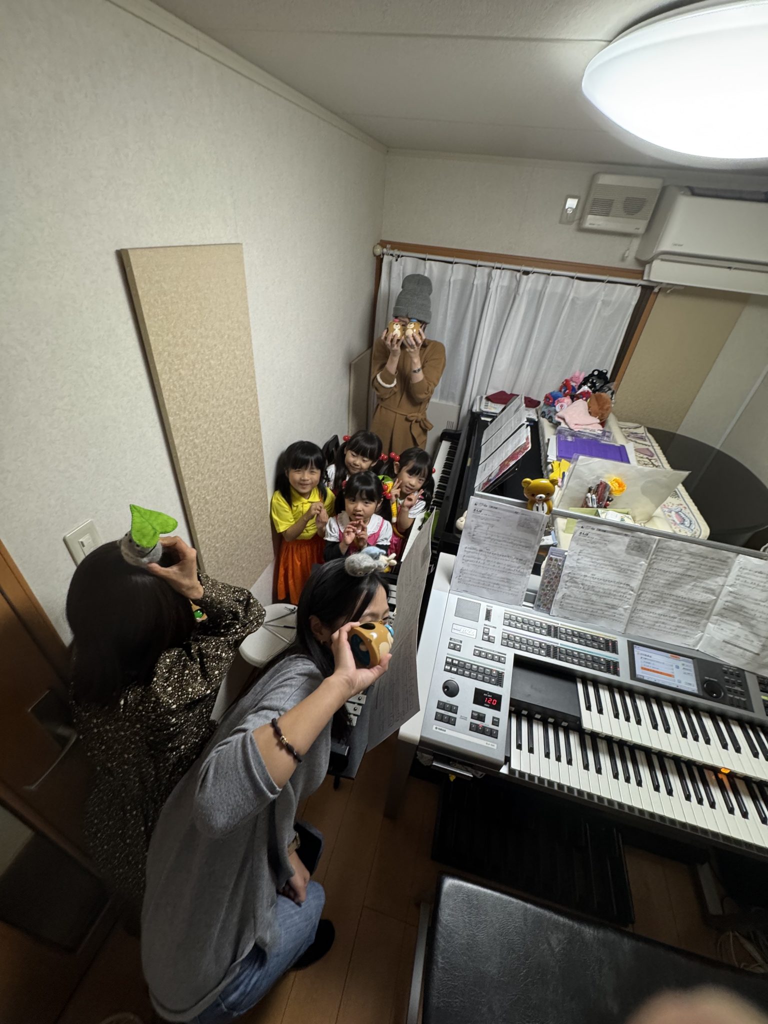 連休を利用して、年中さんと小学1年生の生徒さん四人と、そのお母さん達三人で、アンサンブル練習をしました