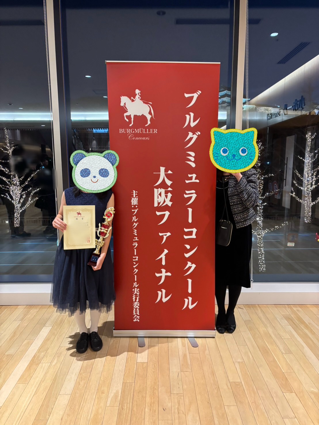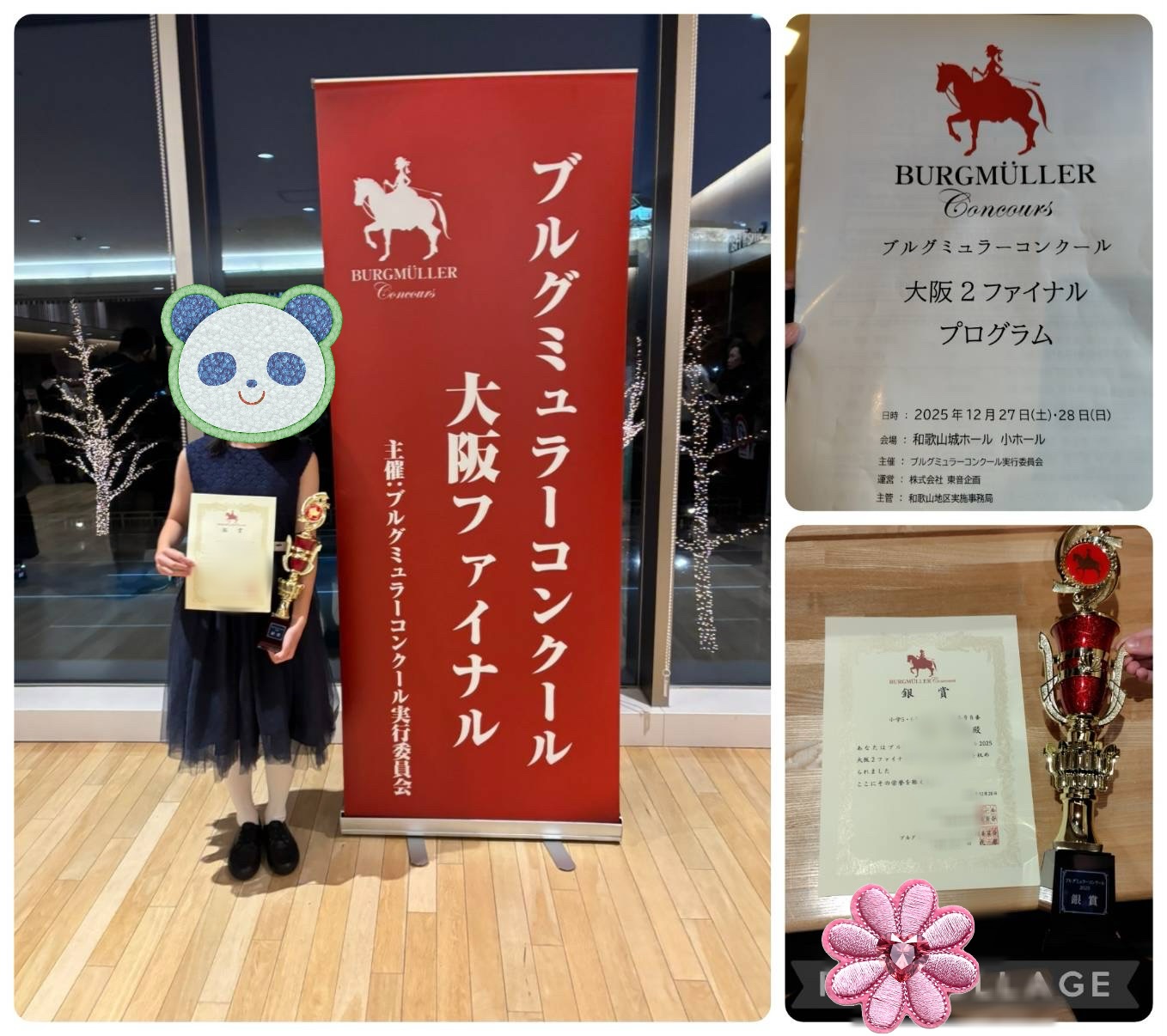 1年目の4年生では予選止まり、2年目の5年生では予選会優秀賞のファイナル出演、3年目の6年生予選会で優勝賞と、ブルグミュラー賞受賞からのファイナル銀賞🥈🏆写真