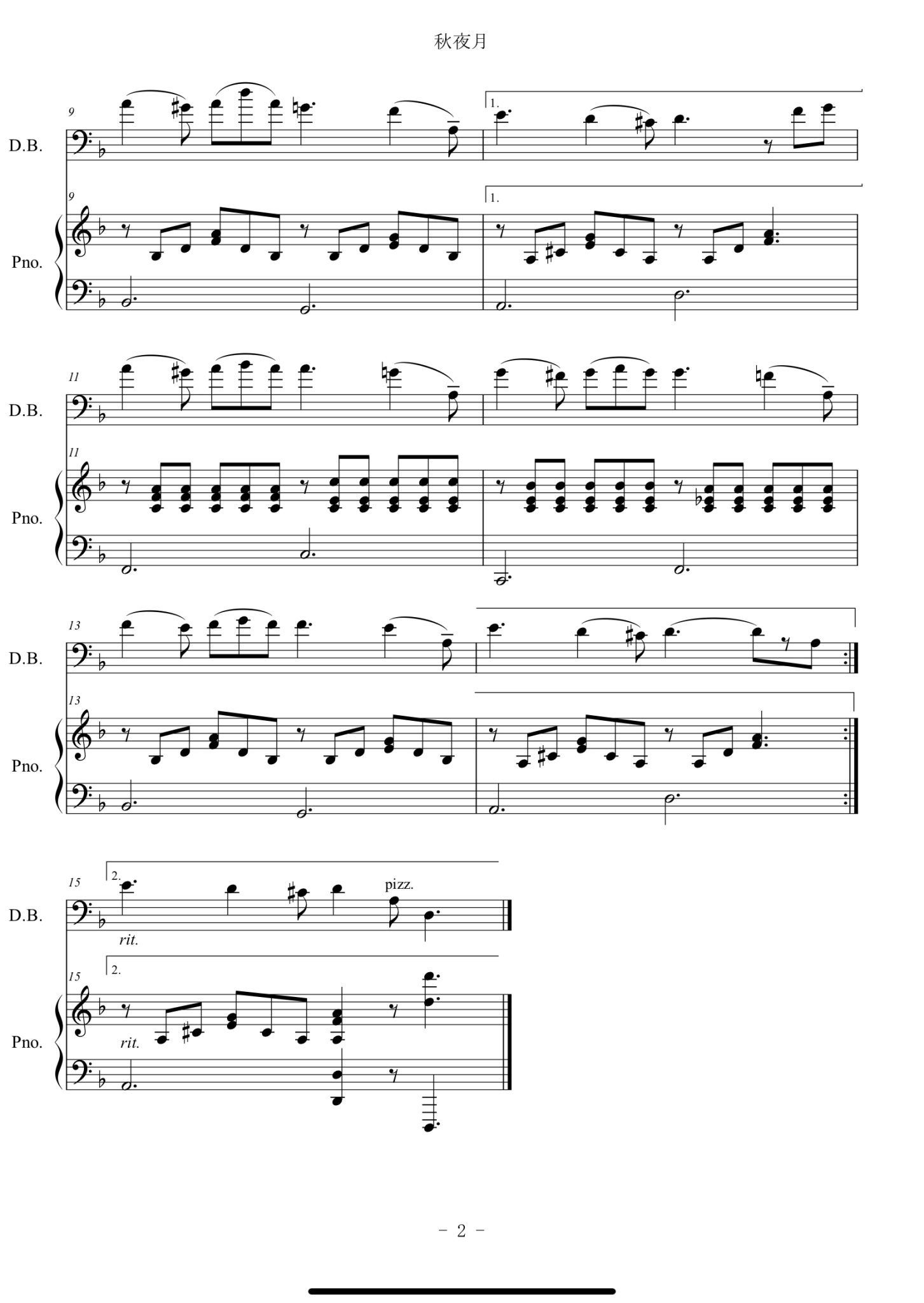 短い曲ですが、久しぶりにピアノとコントラバスの曲を作りました♪